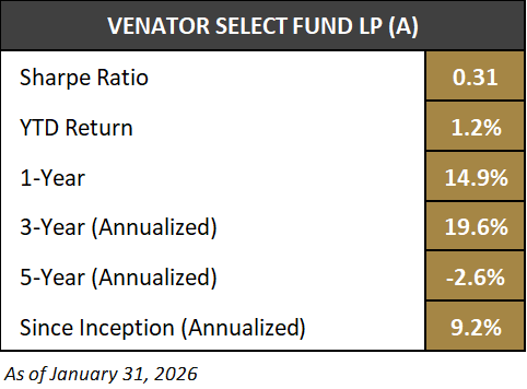 Venator Select Fund is a ‘best ideas’ strategy that strives to generate superior returns through concentrated investments in a small number of opportunities. The Fund can take both long & short investment positions in equity, debt, and derivative securities; as well as strategic trading in special situations.
