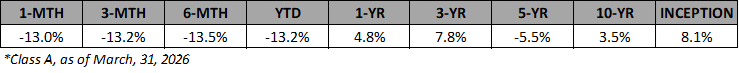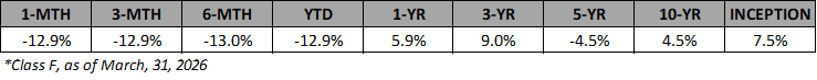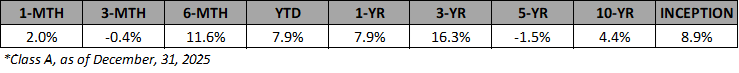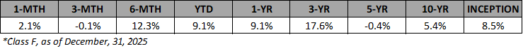 Please Note: Fund performance data is net of fees, however, it is not indicative of future performance, and should not be relied upon when evaluating the merits of a potential investment in the Fund. Performance data relating to market indices such as the S&P/TSX total return, the S&P 500 total return, the Russell 2000, the S&P Toronto Small Cap index, and the Merrill Lynch high yield index have been provided for information purposes only. A comparison of Fund performance to said indices is of limited use due to factors such as portfolio concentration and the potential use of leverage in the Fund.