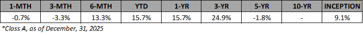 Investment restrictions are minimal with this strategy, and investors are encouraged to refer to the Offering Memorandum for more details relating to investment objectives, strategies, and restrictions.